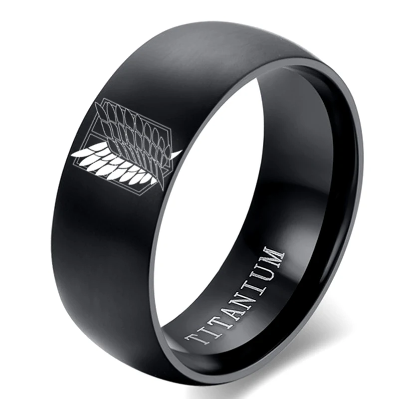 Name: Anillo de acero inoxidable con diseño de alas de la libertad para hombre y mujer, sortija de 8mm, color negro, plateado, para Fans de Anime